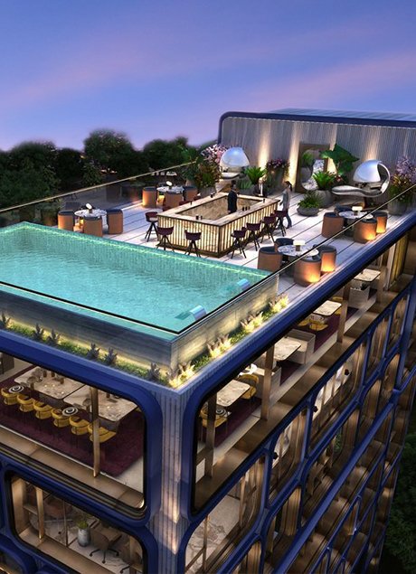 Relax, rejuvenate, and recharge at the rooftop swimming pool surrounded by lush greenery, or enjoy fine dining in on-site restaurants. Pebble House integrates leisure and work, creating a holistic space where professionals can balance productivity with wellness.