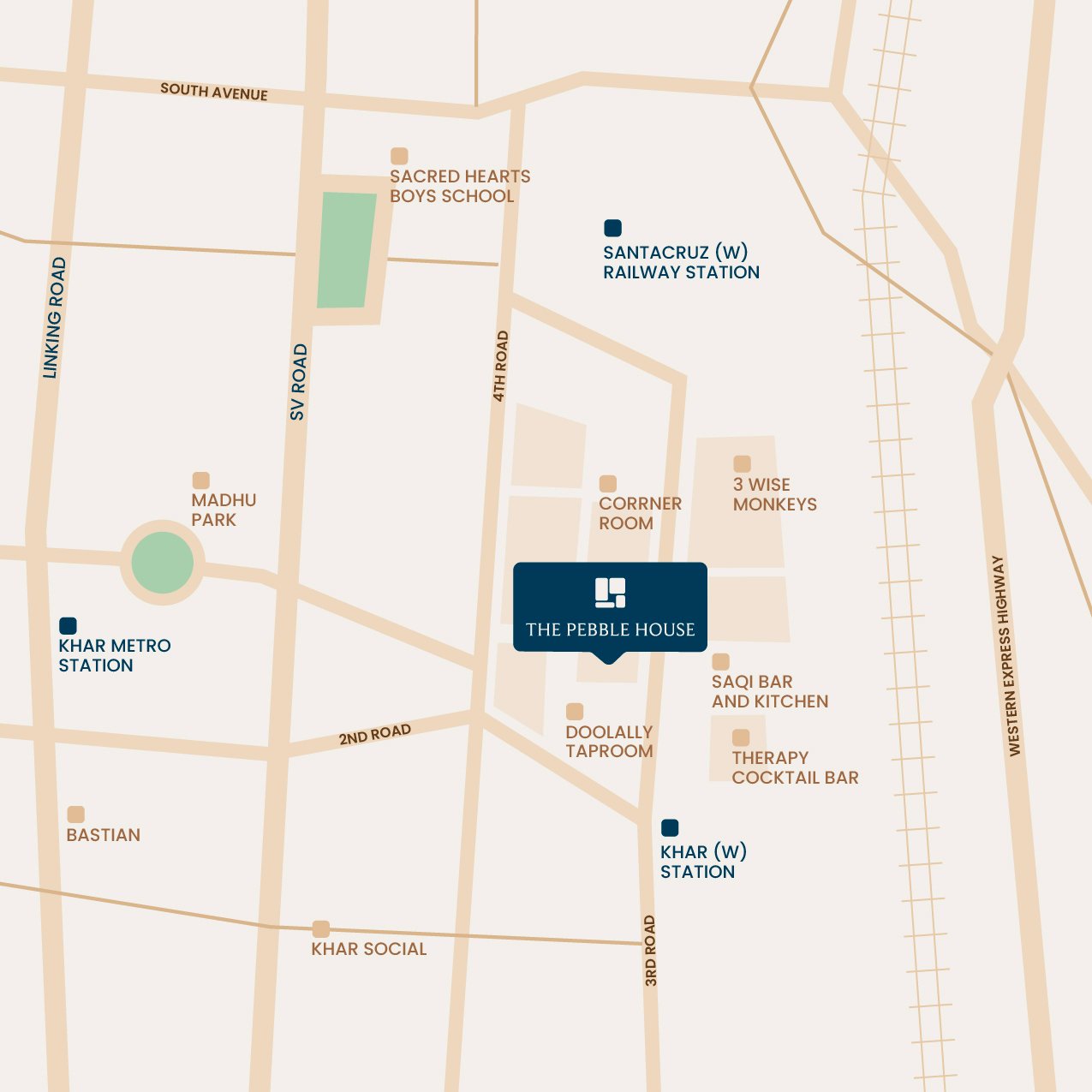 Located on the prestigious 3rd Road in Khar West, Pebble House offers unparalleled connectivity. Just 5 minutes from Khar Station and the upcoming metro, with easy access to Bandra, Santacruz, Juhu, BKC, and the airports, it places you at the heart of Mumbai’s business pulse. Surrounded by elite retail, cafes, and services, your business will thrive in an upscale, dynamic environment.